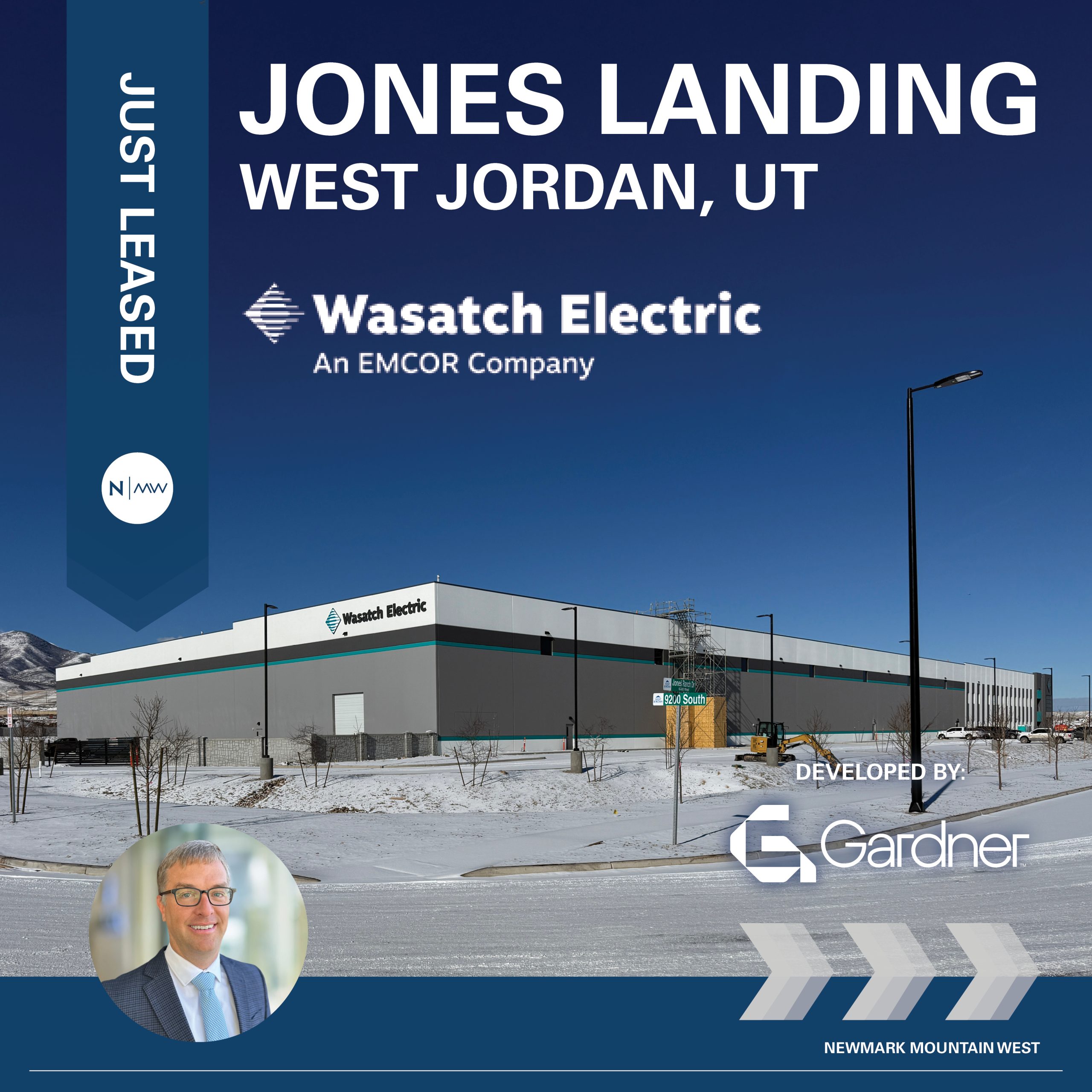 “Jones Landing is a premier business park in West Jordan and has attracted many prominent companies to the area,” stated Robert Kingsford, Managing Director with Newmark Mountain West. “It has been a privilege to represent The Gardner Group and help them elevate their portfolio of quality industrial buildings and tenants in Utah. Thank you to Colliers for bringing Wasatch Electric to Jones Landing as the newest tenant.”